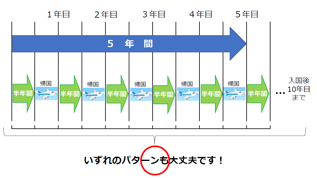 | 在留期間 | 1年、6ヶ月又は4ヶ月毎の更新、通算で上限5年間※1 |