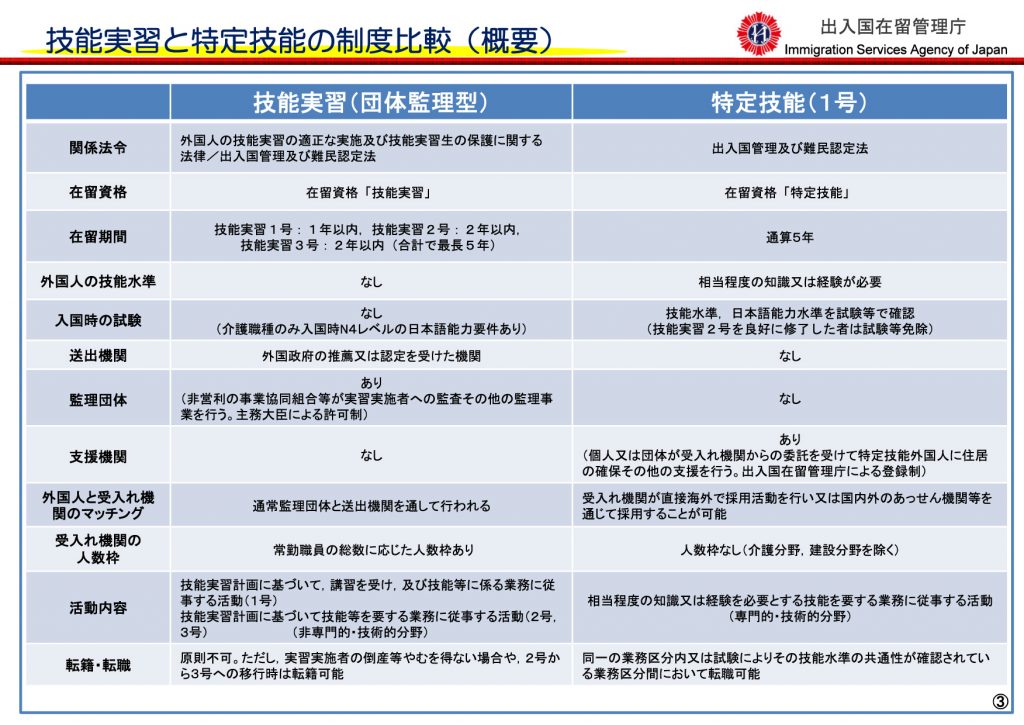 技能実習制度の目的が、技術又は知識を途上国等へ移転する「国際貢献」であるのに対し、特定技能制度は、日本の労働力不足を補う「労働力の確保」を目的としており、制度の趣旨が異なっています。