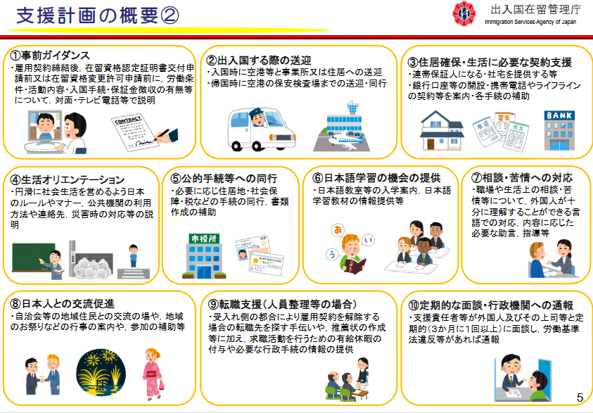 | 毎月手数料 日本語学習機会の提供、転職支援、在留資格更新申請、各種届出、定期的な面談、相談業務等 |