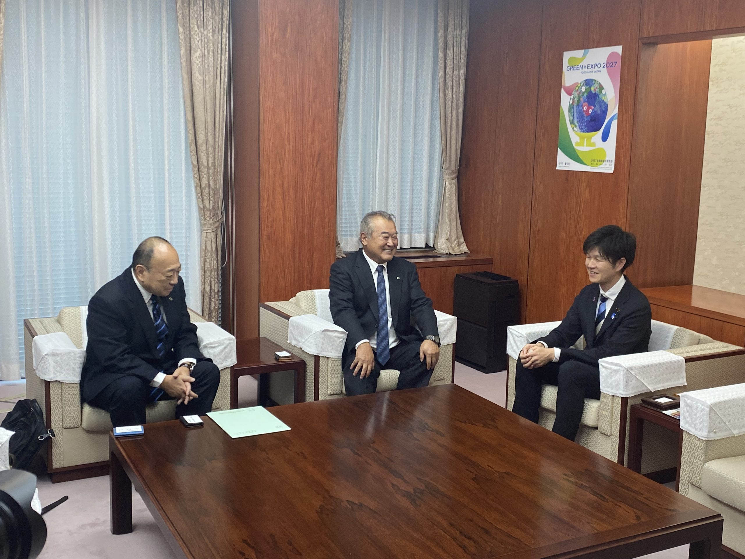 (右から、鈴木憲和農林水産大臣、齋藤一志会長、紺野和成専務理事)