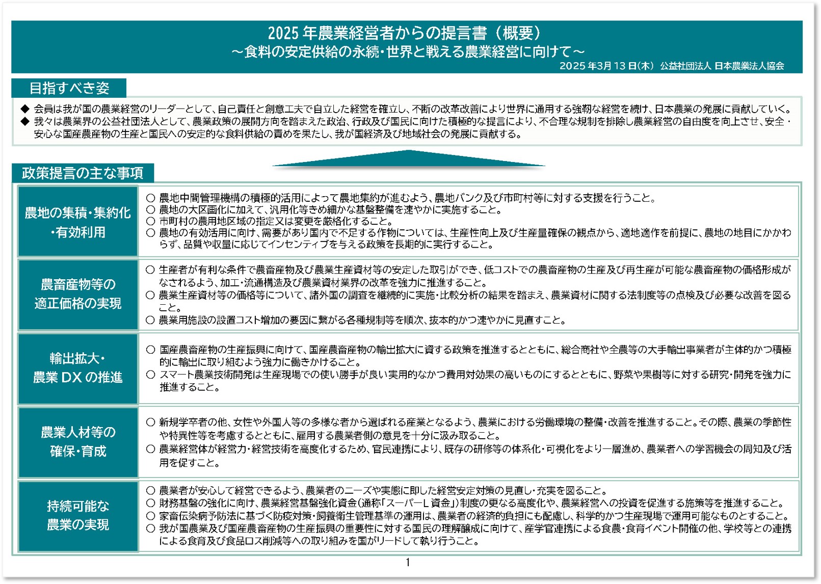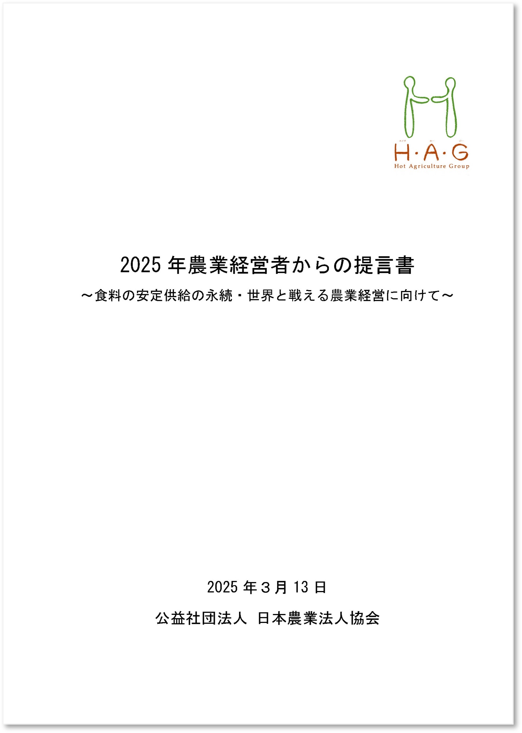 | 「2025年農業経営者からの提言書」の公表について