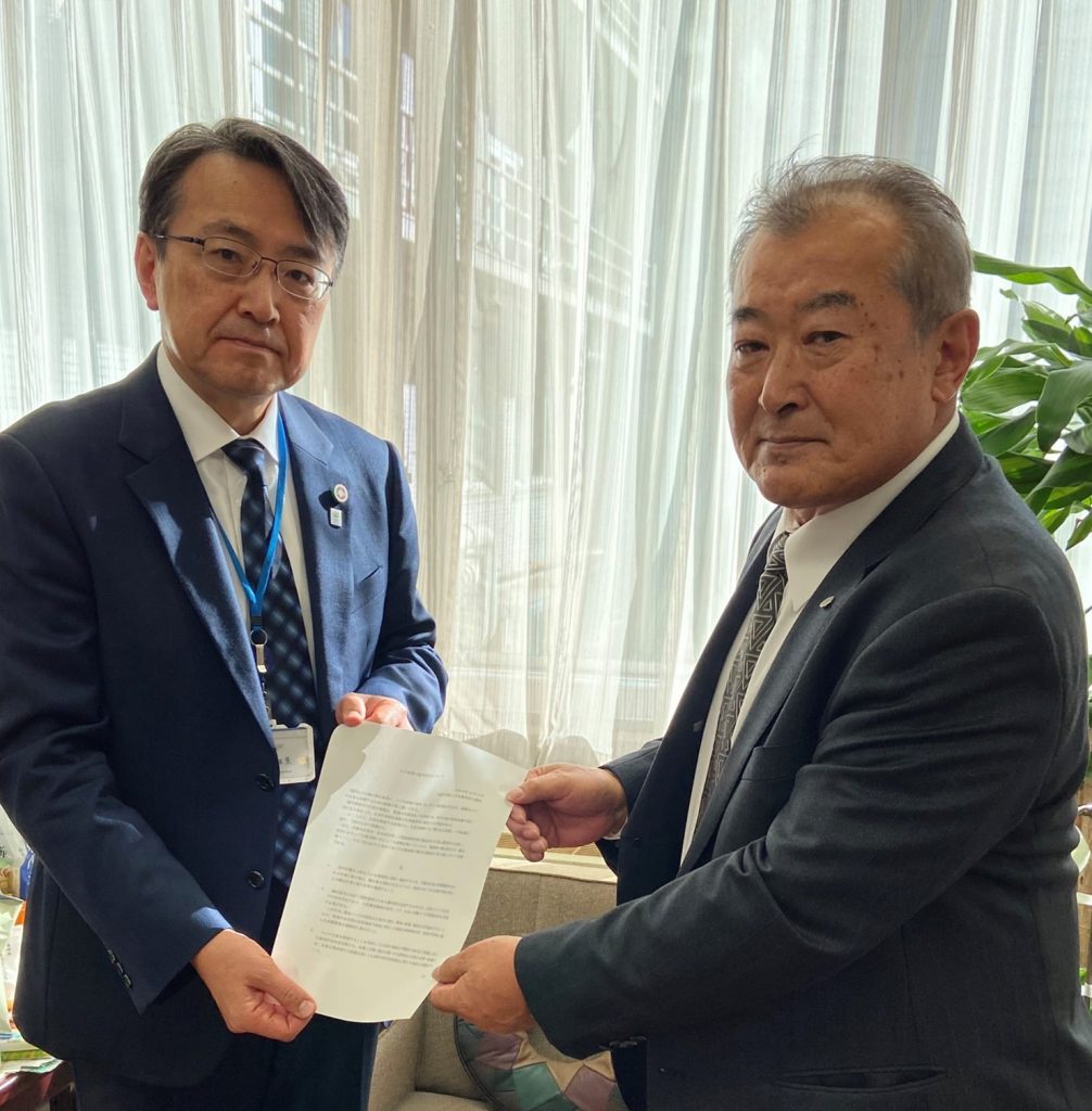 令和5年12月8日(金)政策提言を手交(左:農林水産省 平形雄策 農産局長、 右:齋藤一志 会長)