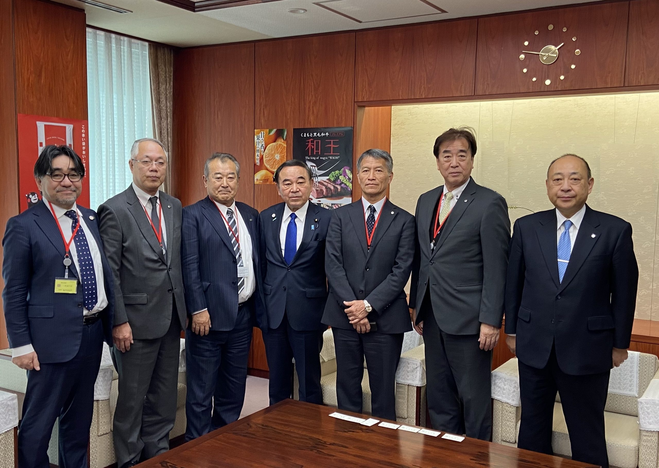 2024年2月16日(金)、齋藤一志会長、髙橋良行副会長、井村辰二郎副会長、林俊秀副会長、前田清浩副会長、紺野和成専務理事が坂本哲志農林水産大臣を表敬訪問しました。齋藤会長、井村副会長から坂本大臣に対し令和6年能登半島地震の被害対応及び経営再開・再建支援を要請しました。