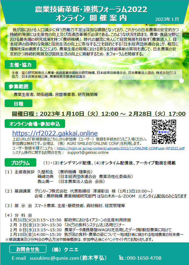 【参加者募集】「農業技術革新・連携フォーラム2022」開催のご案内